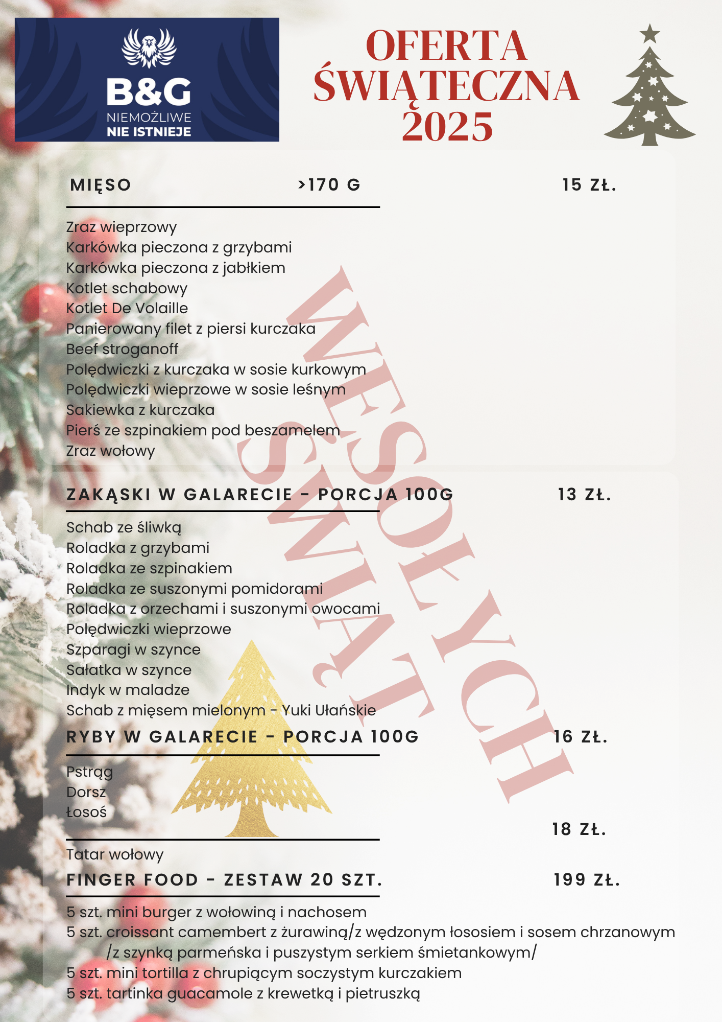 Menu ŚWIĘTA BOŻEGO NARODZENIA 2025
